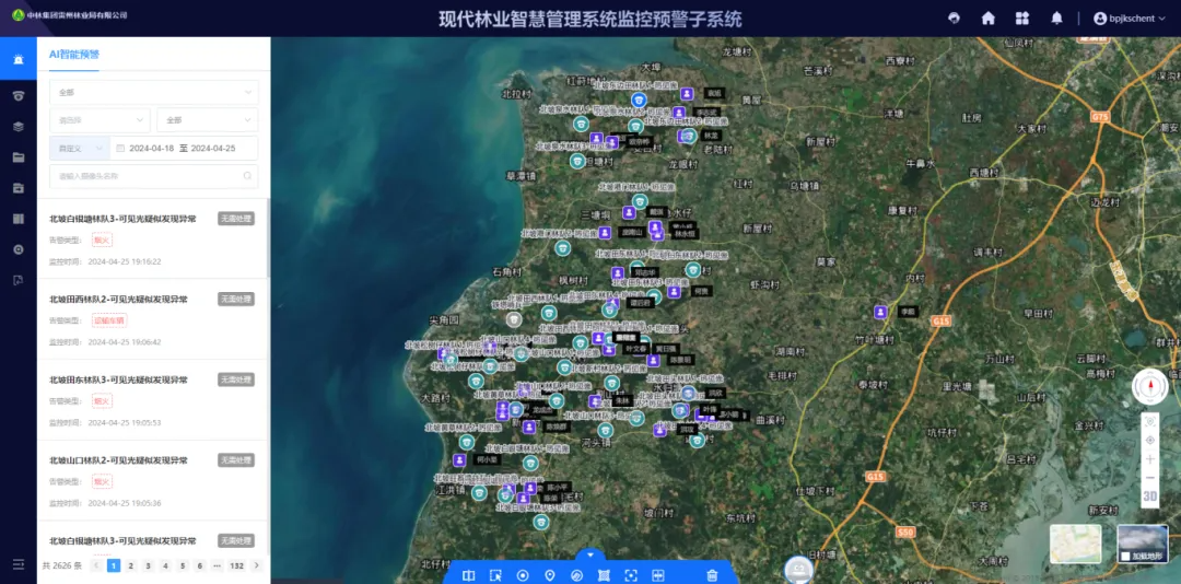 “監(jiān)控室,我現(xiàn)在所在位置是100300小班,該區(qū)域一切正常!”在中林集團(tuán)所屬雷林公司北坡林場(chǎng)分公司監(jiān)控室,值班員正通過現(xiàn)代林業(yè)智慧管理系統(tǒng)監(jiān)控預(yù)警子系統(tǒng)與護(hù)林員實(shí)時(shí)通話并查看該小班的防火動(dòng)態(tài)。