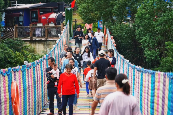 今年中秋國慶期間,中林·商量崗景區在各主要景點,加強力量,重點部署堅守崗位,履職盡責。10月2日、3日兩日中林·商量崗景區迎來游客流量最高峰,日均游客接近3500人次,雙節8日總游客量達12680人次。在雙節期間,中林·商量崗舉辦了DIY月球燈、畫臉譜、中國結手作、團扇涂鴉等一系列豐富多彩的活動。在夜晚,傾情獻唱的樂隊和絢爛璀璨的煙花秀更是為游客增添了濃厚的節日氣氛。