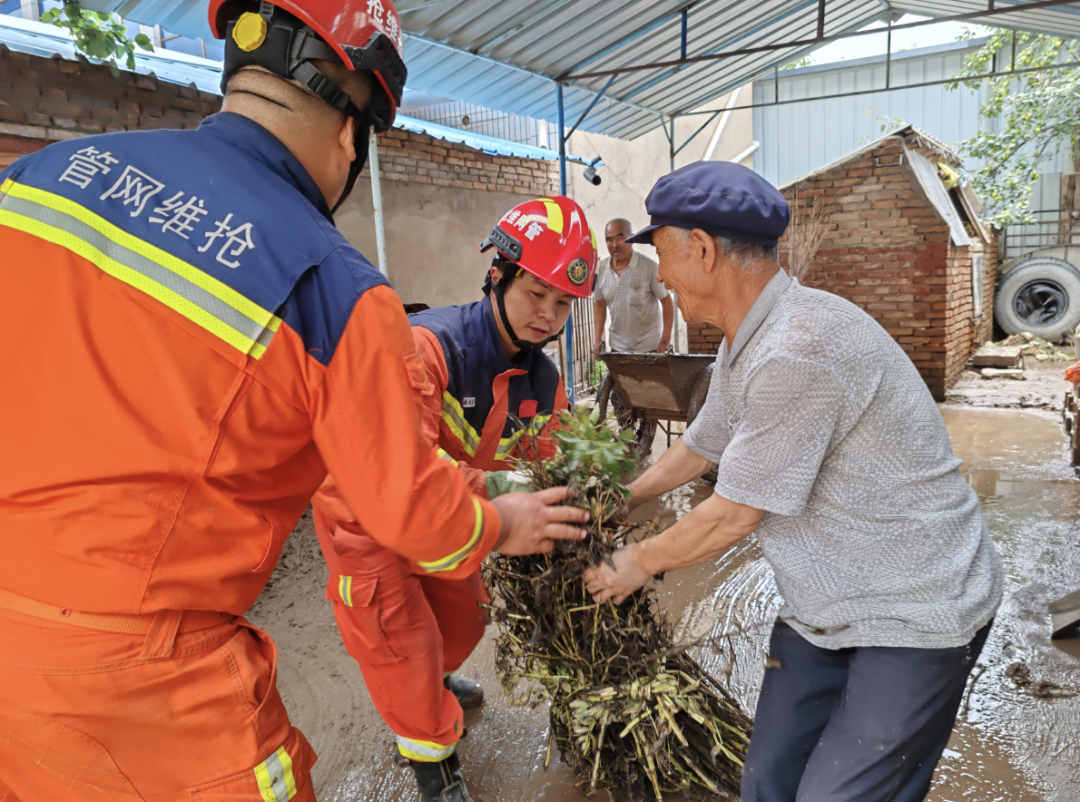 國(guó)家管網(wǎng)集團(tuán)蘭州維搶修中心搶險(xiǎn)隊(duì)伍抵達(dá)后,迅速架設(shè)應(yīng)急照明設(shè)備,點(diǎn)亮夜間救援通道;組織力量深入受災(zāi)區(qū)域,全力幫助群眾清理淤泥,暢通道路。