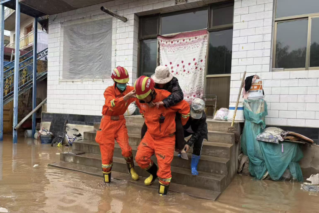 中國(guó)華能消防隊(duì)員轉(zhuǎn)移受災(zāi)群眾