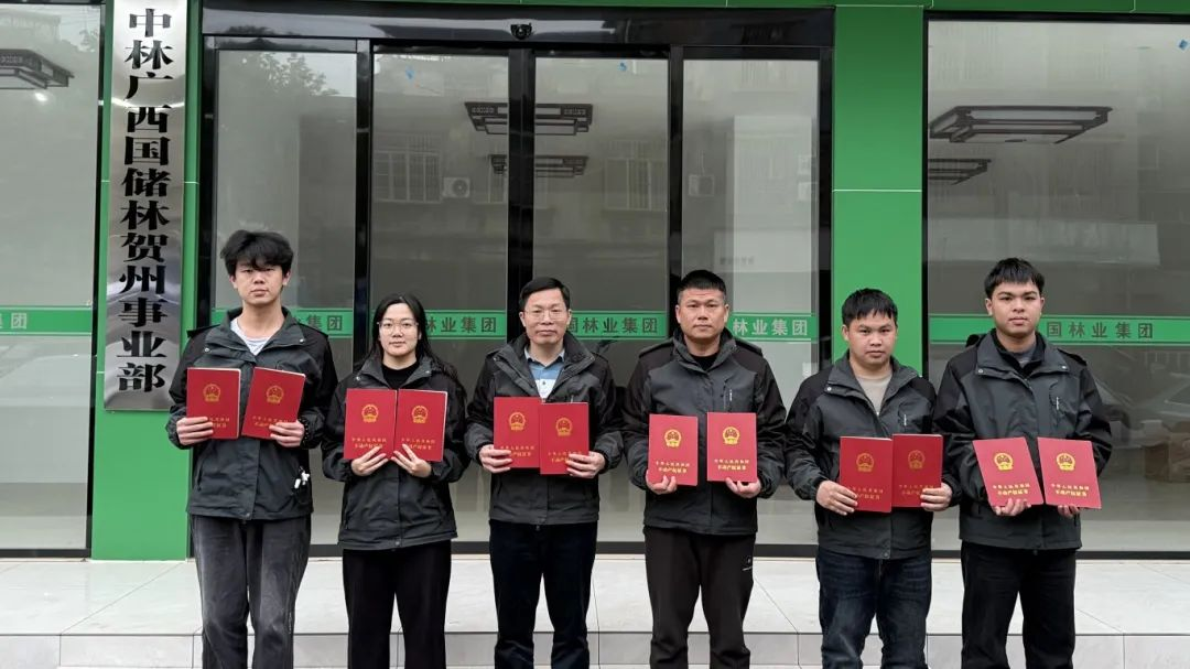 堅持示范引路,積極參與集體林權改革。中林廣西公司緊緊抓住集體林權改革契機,持續探索規?;纸洜I、高質量資產盤活新路徑,通過密切與林業主管部門、地方政府的溝通交流,大力推進國儲林項目確權登記工作,推動在控賀州昭平5.7萬畝林地成功辦理當地“首批”不動產權證,為央地聯手共建高質量國儲林項目注入信心和動力。積極參與“國儲林助推集體林改指標體系構建”課題調研,探索量化國儲林項目經濟效益、生態效益、社會效益,助推集體林權改革。