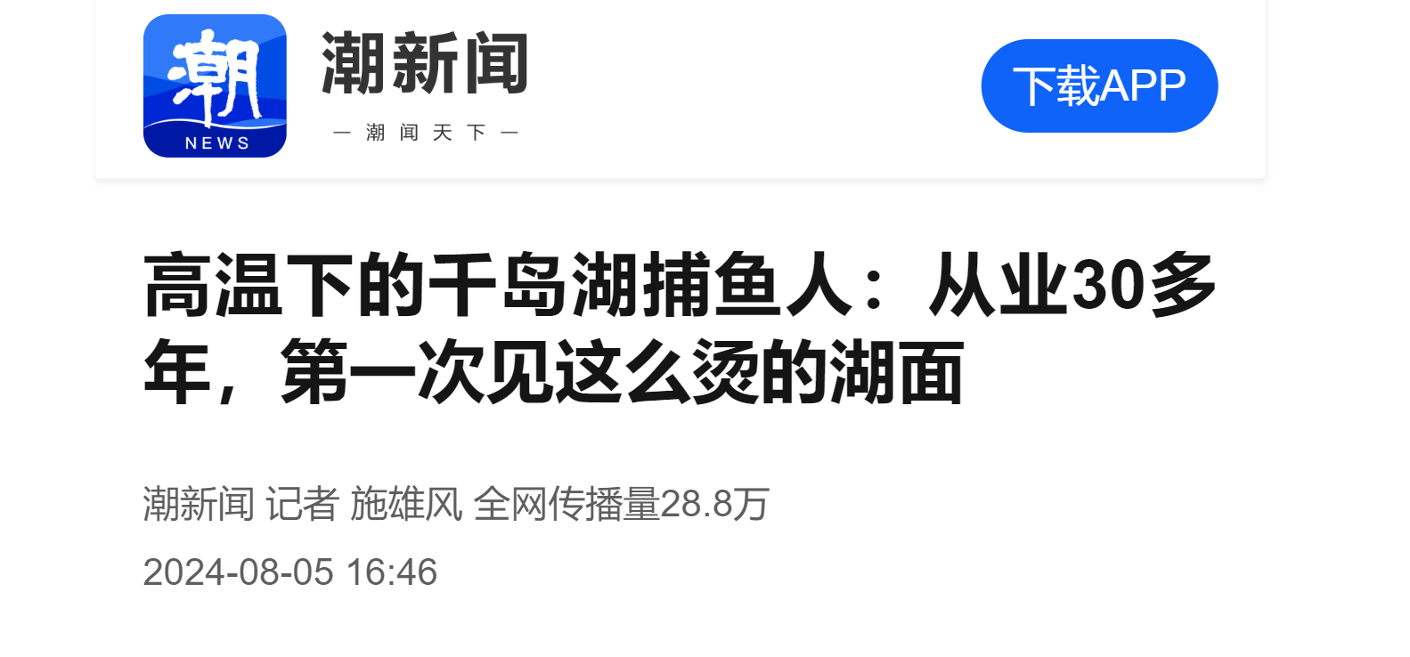 在這個酷夏,浙江多地氣溫屢創新高,牢牢占據全國高溫排行的前列,中林集團所屬杭州千島湖發展集團有限公司的捕撈一隊,在千島湖的廣闊水域上,展開了一場與極端高溫的“勇敢對抗”。
