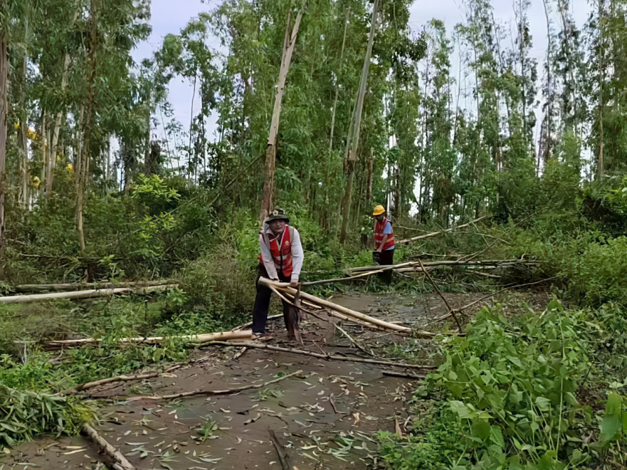 臺風登陸后,廉江林場分公司迅速啟動應急預案,成立3個復產工作組,明確“三個優先”工作機制,優先清理主干道倒伏林木保障通行;優先扶正楠木等珍貴樹種減少損失;優先處置邊坡、高壓線周邊等安全隱患區域。