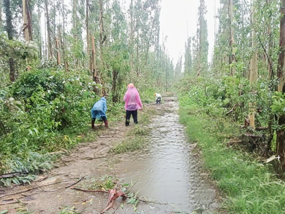 6月14日,今年第1號臺風“蝴蝶”在廣東省雷州半島沿海強勢登陸,導致當地遭遇狂風暴雨侵襲,林區基礎設施與林木資源均受到不同程度的損失。臺風過境后,中林雷林公司所屬各單位即刻響應,迅速組織精干力量,爭分奪秒投入災后清理和道路疏通工作,全力保障林區道路暢通和林區生產生活秩序盡快恢復。