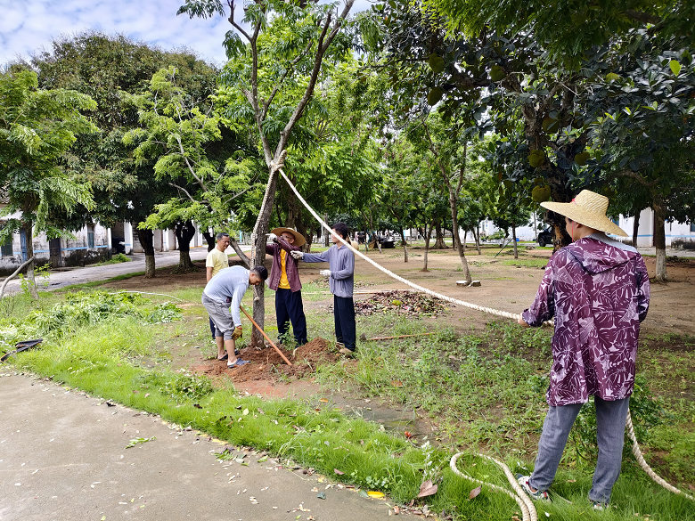 機關員工主動承擔起機關場部的清理整治任務。分組對辦公區、生活區倒伏樹木進行扶正加固,集中清理折斷枝干及落葉垃圾。經過不懈努力,場部環境衛生全面恢復,為救災指揮調度與后勤保障提供穩定基礎。