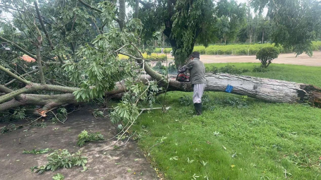 科研分公司安委會成員迅速排查分公司內受災嚴重場所,對倒伏樹木、斷枝等路障進行清理,排除道路安全隱患,確保職工生活及工作場所安全。