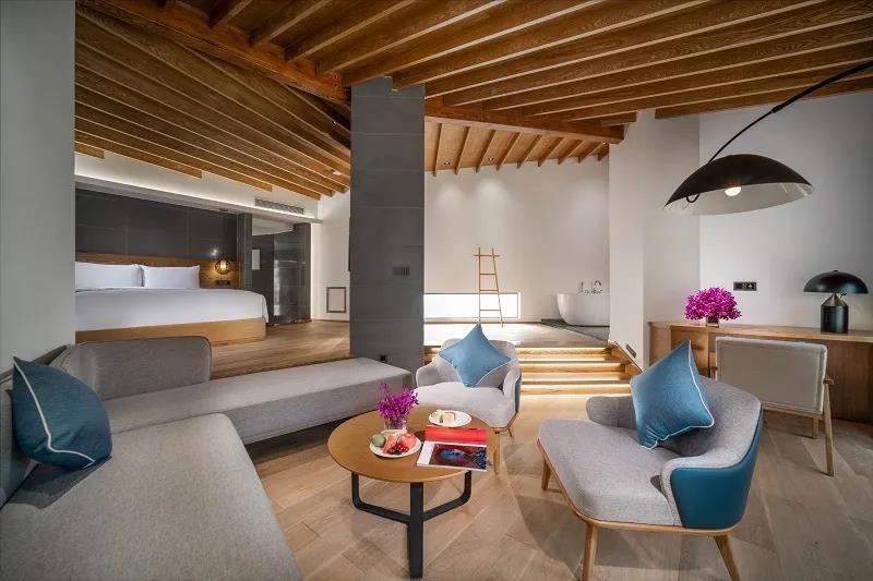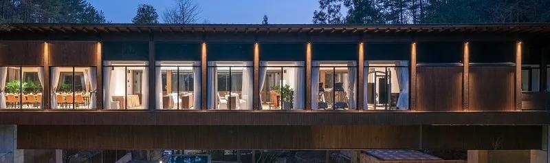 森林木屋是度假區內集住宿、休閑、會議、休養及體驗為一體的高端度假酒店,共36棟單體建筑,建筑面積達到5000多平方米。建造初期,就注重將綠色、生態、環保等理念融入酒店的各個方面,在采光、外墻及屋面建筑、管道設計等環節充分體現了低碳節能的相關技術。