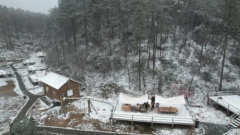 度假區從低碳環保的理念出發,利用廢棄的木頭,打造了獨具特色的雪地帳篷營地,既降低了建造成本,又實現了低碳環保。