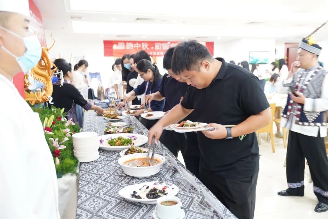 9月6日,中林集團在總部食堂舉辦首屆通道美食節活動,邀請定點幫扶的湖南省懷化市通道侗族自治縣(下稱通道縣)當地廚師,選用通道縣地道食材和幫扶農特產品,為總部和在京企業職工現場制作了侗家紅皮肉、侗家生魚片、香炒蜂蛹等二十五味通道縣特色美食,并開設了特色美食窗口,提供油茶、湖南米粉等地方小吃,講解了侗族合攏宴傳統習俗。活動現場還設置了侗族文化體驗區,展銷非遺傳統手工藝品——侗錦,讓廣大干部職工近距離體驗通道縣的侗族飲食文化和民俗風情,厚植愛農助農幫扶情懷。