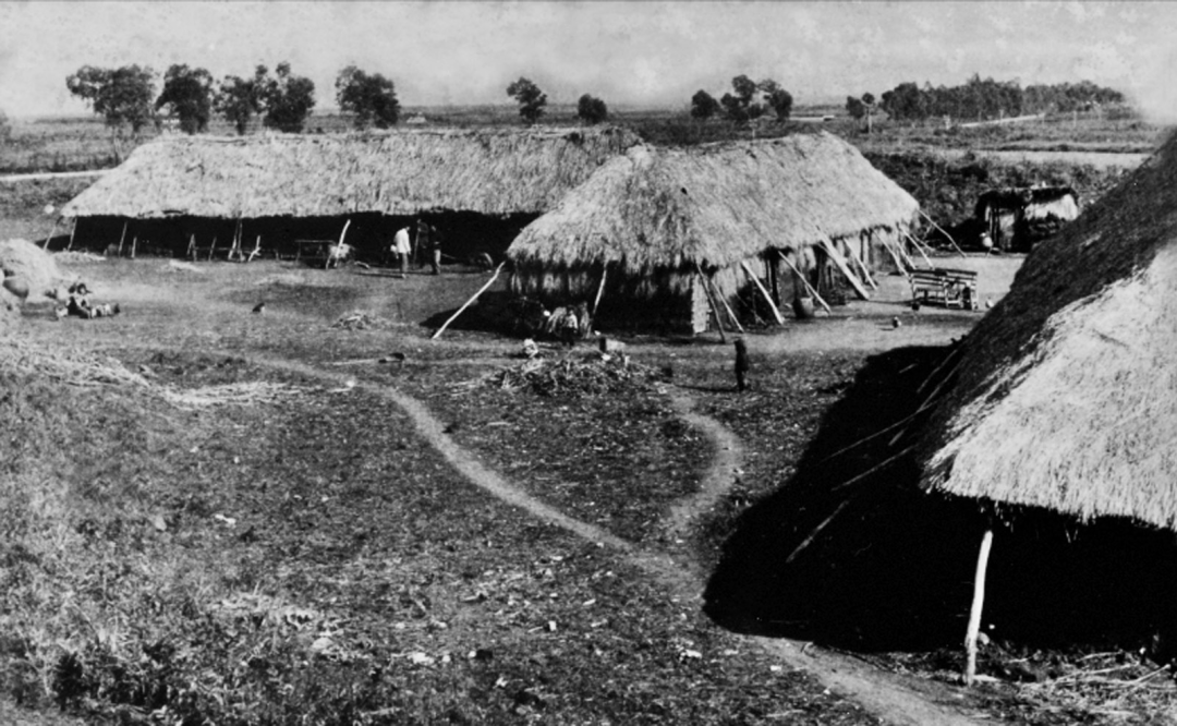 老一輩雷林人搭建茅棚,扎營荒山野嶺植樹造林。(1955年攝)