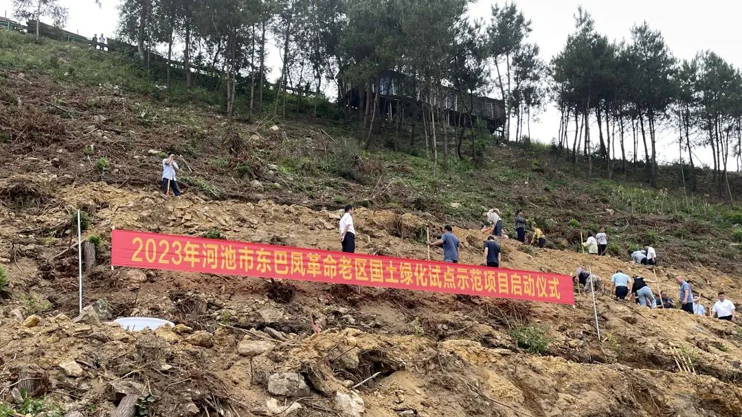 2023年,廣西第一個國土綠化項目“廣西壯族自治區(qū)世界壽鄉(xiāng)河池市東巴鳳革命老區(qū)國土綠化試點示范項目”在東巴鳳三縣開始建設,中林集團所屬中林廣西林業(yè)投資發(fā)展集團積極響應當?shù)卣栒?,指導所屬廣西中林生態(tài)城投資有限公司參與國土綠化項目,因地制宜實施高質(zhì)量造林與管護一體化綜合治理,為推動東巴鳳革命老區(qū)生態(tài)文明建設筑牢“綠色屏障”。