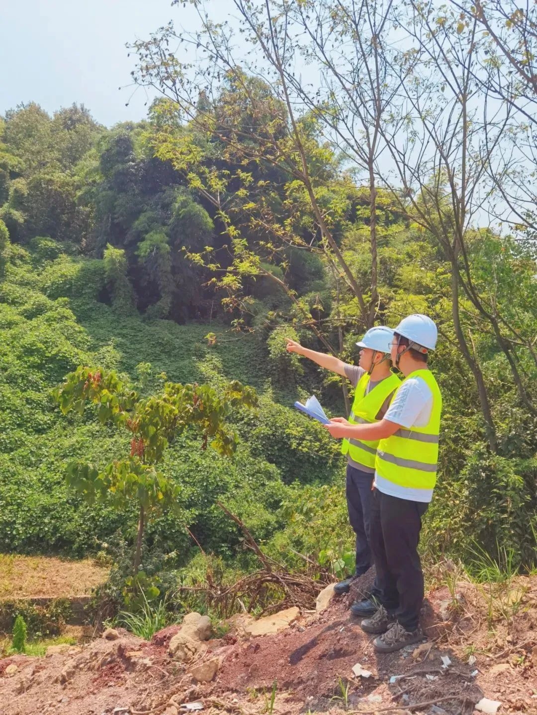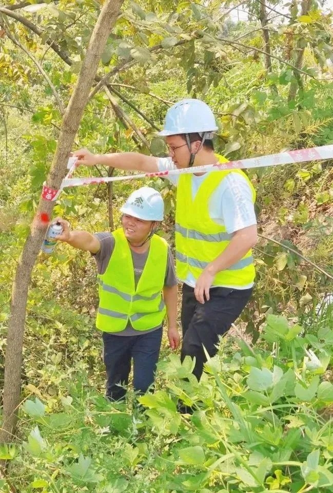 淬火鑄鐵軍,青山證丹心。那段時間銅梁區連續高溫預警,項目部青年突擊隊成員鄒峰嵐和吳雪民作為黨員,沖鋒在前,持續在“炙烤模式”中澆筑綠色屏障——他們充分利用施工空窗期,為防火隔離帶中的珍貴闊葉樹系上“生態身份證”,在蒸騰熱浪中為每寸山林鐫刻守護坐標。
