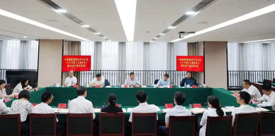 5月24日,中林集團黨委舉辦理論學習中心組2024年第三次集體學習暨黨紀學習教育讀書班。集團公司黨委書記、董事長、總經理單忠立出席會議并作開班動員講話。集團黨委委員、副總經理李留彬、梁中基,黨委委員、總會計師王迎財,黨委委員、紀委書記王云飛參加學習,國務院國資委黨委黨紀學習教育工作專班有關同志蒞臨指導。