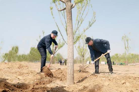 春風拂綠,萬象更新。為深入貫徹習近平生態文明思想,以實際行動踐行“綠水青山就是金山銀山”理念,進一步營造全民參與植樹造林的良好氛圍,4月19日,集團公司、國家林草局、國開行30余名機關干部在北京市溫榆河公園聯合開展義務植樹活動。國家林業和草原局黨組成員、副局長李春良,國家開發銀行黨委委員、執行董事、副行長周清玉,集團公司黨委書記、董事長余紅輝等領導參加活動。