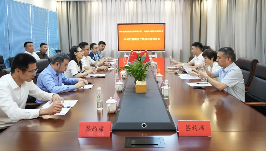 5月15日上午,中林集團所屬中林鑫宙竹纏繞發展有限公司在浙江杭州與珠海綠色新材料有限公司舉行中林竹纏繞生產線項目簽約儀式。本次簽約是中林竹纏繞產業發展歷程中的重要里程碑事件,標志著中林新一代竹纏繞復合管道生產設備技術從研發構想走向生產一線。