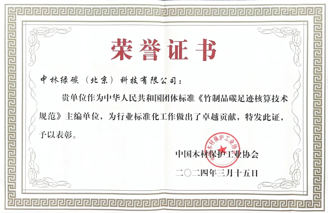 同時,中林集團積極參與我國竹產業標準的編制工作,主編了《竹制品碳足跡核算技術規范》標準并榮獲了中國木材保護工業協會表彰。
