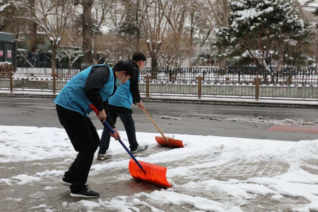 志愿者們分工合作,他們手持鐵鍬、掃帚等工具,有的負責清掃人行道上的積雪,有的則專注于鏟除道路上的冰層。雖然天氣寒冷,但大家的干勁卻絲毫不減,不到一個小時,單位門前的道路就被清掃得干干凈凈,最大程度減少了積雪對過往市民出行安全帶來的不利影響,為這個料峭寒春增添了濃濃暖意。