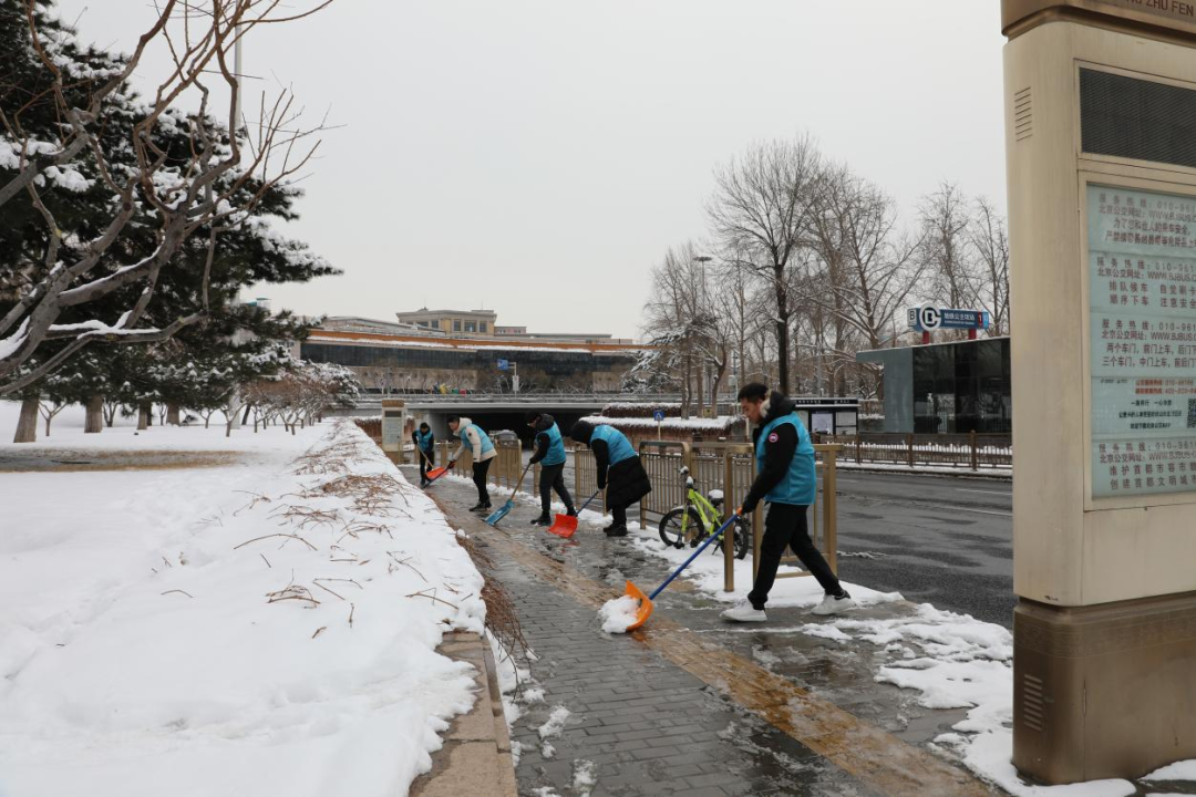 2024年2月21日凌晨,一場不期而至的大雪為北京各地區披上了一層潔白的外衣,道路積雪和結冰成為了人們出行的障礙。為保障單位周邊道路安全,方便市民出行,中林集團“林小青”志愿者服務隊以雪為令,立即投入到掃雪除冰工作當中。