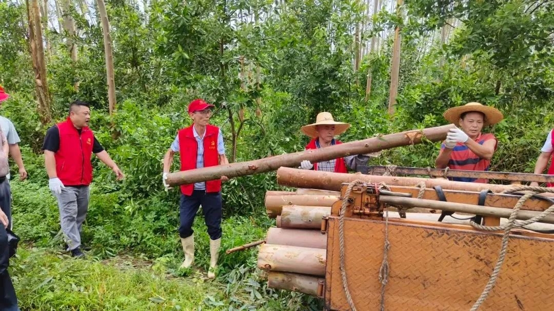 連日來,受超強臺風“摩羯”影響,遂溪林場分公司大批林木倒伏,損失較大,也影響周邊道路出行。分公司迅速啟動應急預案,下沉一線、主動作為。為充分發揮黨員在救災復產中的先鋒模范作用,9月8日,分公司黨總支組織機關黨員志愿者服務隊到六坑林隊1074小班開展清障活動。黨員志愿者們拿起鐵鍬、鐮刀頂著烈日清理折斷的林木,齊心協力扛木材裝車,幫助疏通村道,確保群眾出行安全,以實際行動踐行為民服務的初心。
